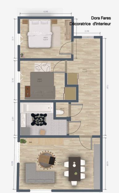 Projection 3D d'un appartement 3P sur Massy.