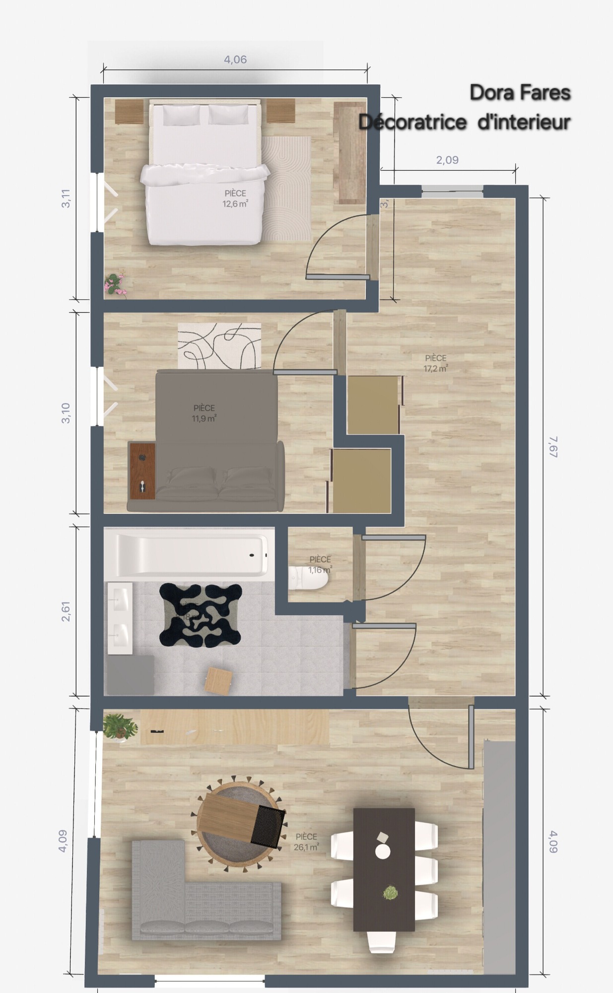 Voici des rendus 3D d'aménagement que j'ai élaboré pour un appartement de type 3 pièces d'une superficie de 70 m² situé à Massy, actuellement inoccupé. Les potentiels acquéreurs éprouvaient des difficultés à se projeter dans l'espace de vie. J'ai donc opté pour un style scandinave, mettant en avant l'utilisation du bois et un design épuré afin de favoriser une perception claire et agréable de l'environnement.